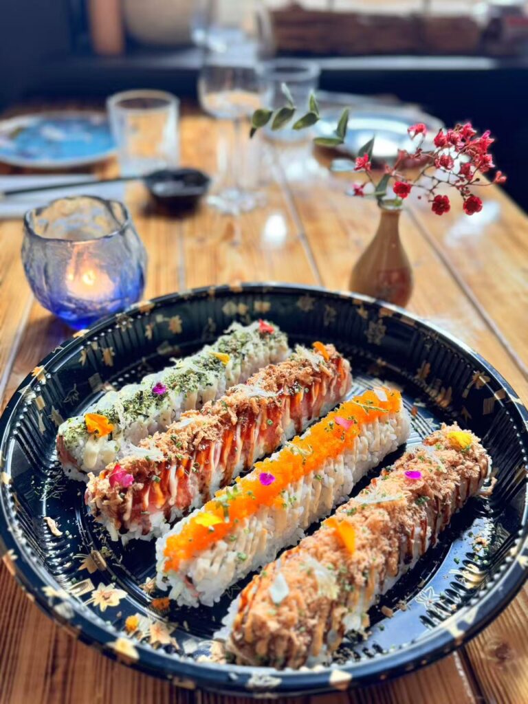 Inari, tamago, winterpeen, tonijn, koreaans dressing